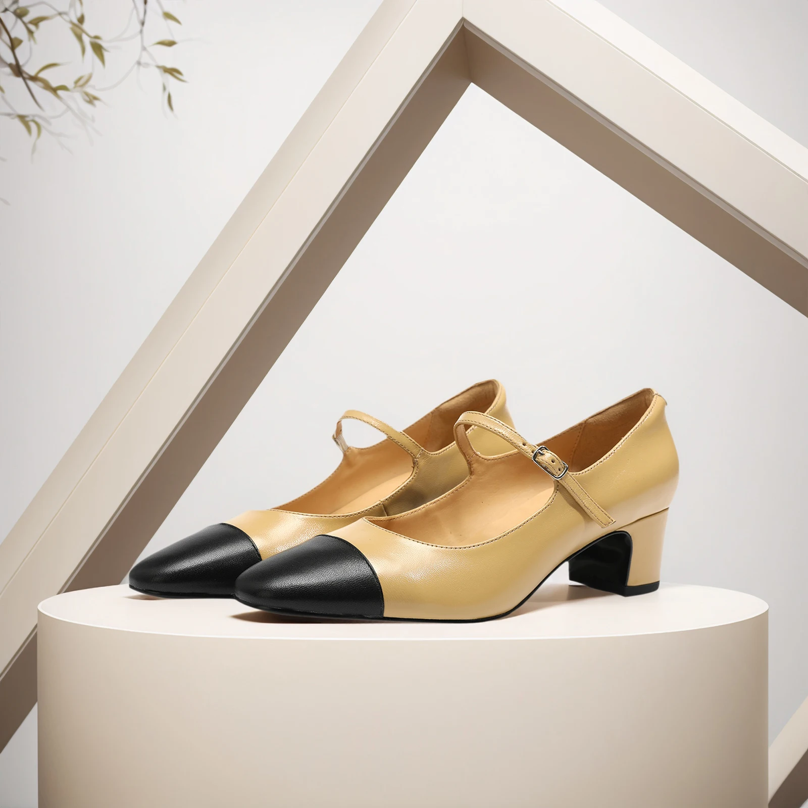 2026 Spring Heighten New Simple Elegant Mary Jane Chunky Heel Single Shoes Women's Genuine Leather Shoes